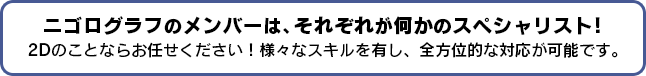 私たちは豊かな発想力と高い技術力を持って2Dグラフィックスの良さを引き出します。