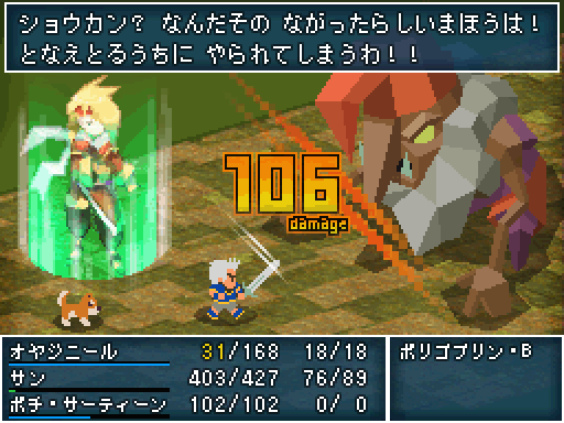 2Dドット時代と3Dポリゴン時代、双方のRPGのダメなお約束(単調なおつかいイベントや演出過多の召喚魔法など)を、父と子二人のキャラクターが互いを批判し合う事で皮肉っている点が面白い。最初は反発し合っていた二人が徐々に互いを認め合い、最後には完全に絆を取り戻すという流れにも胸がアツくなる。2Dと3DのCGが一画面に無理なく共存している点も◎。2人プレイ前提なのが気になるが作りも丁寧で、親子でプレイしてもらいたい逸品。