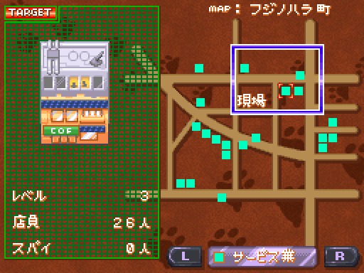 街並み計算とはどういう意味だろうと思ったが、ちょっと触ってみてなるほど。例えば小さい商店に、他から拾ってきた商店をぶつけてみるとスーパーが完成。マンションから部屋を引っこ抜けば一軒家に。異業種同士を組み合わせれば、新しい業種にと、これは確かに計算をしているような気分になる。なかなかコミカルだが、邪魔な会社を妨害するために、他会社のスパイを投げ込むというのはちょっとブラックだなぁ。あと猫が巨大化しすぎ…。怪獣じゃん。