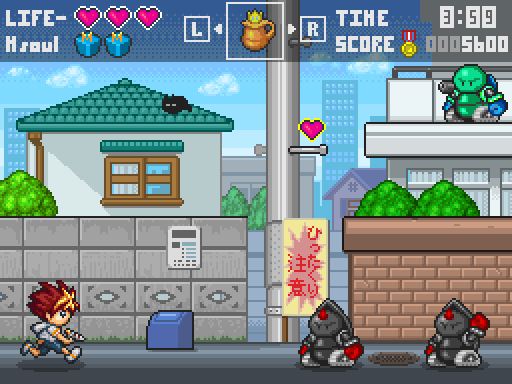 横スクロール(上下も画面以上に少し動く)アクションシューティング。