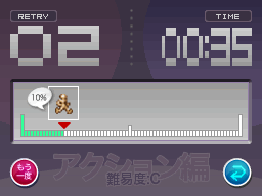 ゆとりゲームの溢れる昨今、本来のゲームの楽しさを究極までに追求しようと生み出されたゲーム。多種多様なジャンルのミニゲームが遊べるが、全ての難易度はエクストリーム!しかし、少しずつプレイヤー自身が成長するのを実感出来るようになっているので、のめり込んだプレイヤーはいつの間にかプロゲーマーになっています。