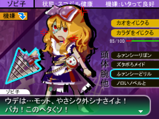 ねぇ…本当は好きなんでしょ?ゾンビって10回言ってみなよ!ゾンビゾンビゾンビ…もひとつゾンビだぉら!パーツを組み替えてお好みゾンビを作れるんだからさぁ。キュートなゾンビ娘から本格派グロゾンビまで作れるんさ!イカスだろ?作ったレシピは友達と交換できるぞ!え…友達なんか居ないって?大丈夫!オレもゾンビだから!おいおい、そんな目で見るなよ!ゲームの方は結構まともだしさ!ゼルダみたいなヤツだよ!言っちゃえばね!